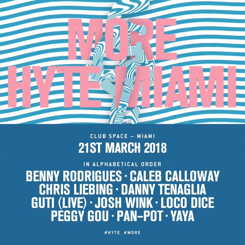 After a mouthwatering first wave of names, we are happy to reveal the complete line-up for HYTE Miami 2018 including heavyweights Caleb Calloway, Danny Tenaglia DJ, Guti, Josh Wink and Yaya! #MORE #HYTE #Miami#MOREHYTEMIAMI